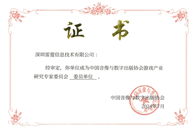2024年7月25日,,,,中国音像与数字出版协会游戏产业研究专家委员会(以下简称“中国音数协游戏专委会”)成立大会在上海市召开,,厦门LEWIN乐玩网络技术股份有限公司及其子公司深圳雷霆信息技术有限公司(以下统称“公司”)正式成为中国音数协游戏专委会委员单位。。。